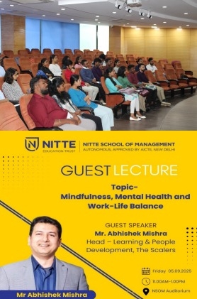 We were privileged to have Dr. Mohan S G, Professor & HoD, Dept. of ISE, NMIT, interact with our MBA 2025–27 batch on Campus Resources: Library and Digital Tools. Dr. Mohan highlighted the wealth of academic and digital resources available, guiding students on how to effectively leverage the library, databases, and technology platforms to support their learning journey.