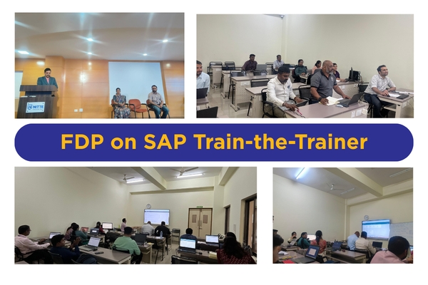 The SAP Train-the-Trainer Faculty Development Program was initiated by the NSoM, with active participation from faculty members of NSOM and the Department of Business Management, NMIT. The program was conducted in two phases and was facilitated by an SAP expert.